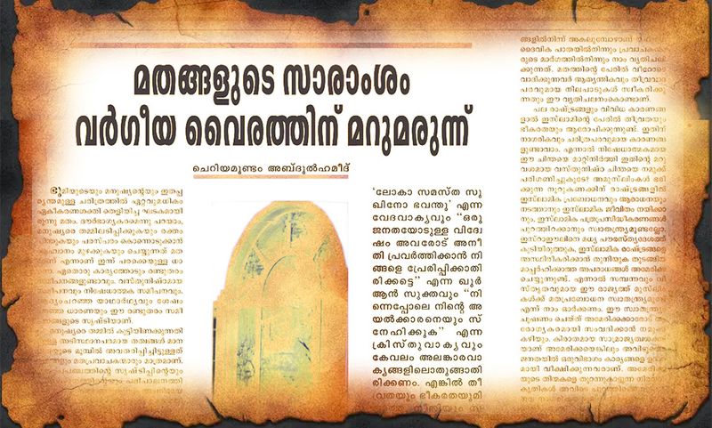 അനിഷേധ്യമായ വസ്തുത ഇതാണെന്നിരിക്കെ, മതത്തിലും ദൈവത്തിലും വിശ്വസിക്കുന്നവര്ക്കു പോലും വിശ്വമാനവികത എന്ന മഹത്തായ ആശയം പുലര്ത്താനാവാത്തത് എന്തുകൊണ്ടാണ്? ഇവിടെ മതമല്ല സത്യത്തില് പ്രതിക്കൂട്ടില്. മറിച്ച്, മതത്തെ സങ്കുചിതവത്കരിച്ചവരും അതിനെ ചുരുട്ടിക്കെട്ടിയവരുമാണ്. മതത്തെ സംഘടനയായും സ്ഥാപനമായും സമുദായമായും പരിചയപ്പെടുത്തുന്നവരാണ്.