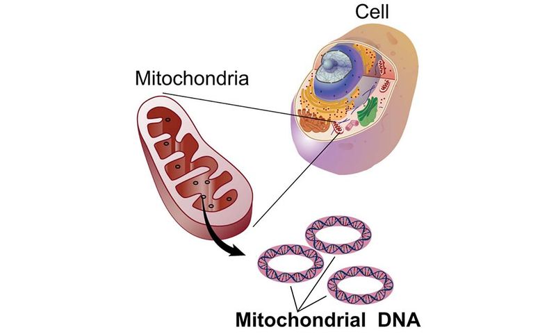 നമ്മുടെ കോശങ്ങളില് ഊര്ജം ഉല്പാദിപ്പിക്കുന്ന 'ഓര്ഗനെല്ലസ്' ആണ് മൈറ്റോകോണ്ഡ്രിയ. അവയ്ക്കു സ്വന്തമായി ന്യൂക്ലിയസിലെ ഡിഎന്എയില് നിന്നു വേറിട്ടുനില്ക്കുന്ന വര്ത്തുളാകൃതിയിലുള്ള ചെറു ഡിഎന്എയുണ്ട്. മനുഷ്യരില് മൈറ്റോകോണ്ഡ്രിയല് ഡിഎന്എ മാതാവില് നിന്നാണ് സിക്താണ്ഡത്തിലേക്ക് കൈമാറുന്നത്.