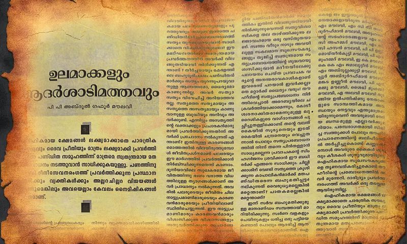 ചില്ലിക്കാശിന് വേണ്ടി സത്യത്തെ ക്രൂശിക്കുന്ന കാപാലികന്മാര്ക്ക് മതപണ്ഡിതരെന്ന ബഹുമതിപ്പട്ടം നല്കുന്നത് വൈരുധ്യമല്ലെങ്കില് മറ്റെന്താണ്? സര്വ ബഹുമതിക്കുള്ള മാനദണ്ഡം സമ്പത്തായി മാറിയിരിക്കുന്നു. സ്വര്ണവളകളും ചെയിനുകളും ധരിച്ച ഒരു പട്ടിയെ കണ്ടാല് പോലും ആദരിച്ച് ആനയിക്കുന്ന കാലഘട്ടമാണിത്.