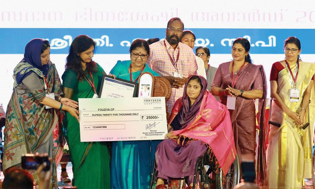 ഒമ്പതാം വയസ്സില് കാലുകളെ മസ്കുലര് ഡിസ്ട്രോഫി എന്ന രോഗം കവര്ന്നെടുക്കുമ്പോള്, ഫൗസിയ കരുതിയത് തന്റെ ലോകം വീടിന്റെ നാലു ചുവരുകള്ക്കുള്ളില് അവസാനിക്കുമെന്നാണ്. വര്ഷങ്ങള്ക്കിപ്പുറം, പ്രതിസന്ധികളെ പുഞ്ചിരി കൊണ്ട് നേരിട്ട ഫൗസിയ, കേരളത്തിലെ മികച്ച ഭിന്നശേഷി ജീവനക്കാരിക്കുള്ള സംസ്ഥാന പുരസ്കാരത്തിന്റെ നിറവില് നില്ക്കുന്നു.