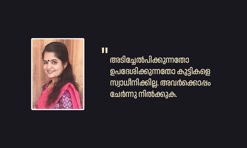 ഏത് പ്രായത്തിലുള്ള കുട്ടികളുമായി ഇടപെടണമെങ്കിലും ആദ്യം നമ്മള് അവരിലേക്ക് ഇറങ്ങിച്ചെല്ലണം. അവരെന്താണ്, ഇഷ്ടങ്ങളെന്താണ്, കാഴ്ചപ്പാടുകളെന്താണ് എന്ന് മനസ്സിലാക്കാതെ നമ്മള് നില്ക്കുന്നിടത്തേക്ക് ആരെയും വലിച്ചുകൊണ്ടുവരാന് ശ്രമിക്കരുത് എന്നാണ് ഇത്രയും വര്ഷം കൊണ്ട് ഞാന് പഠിച്ച പാഠം.